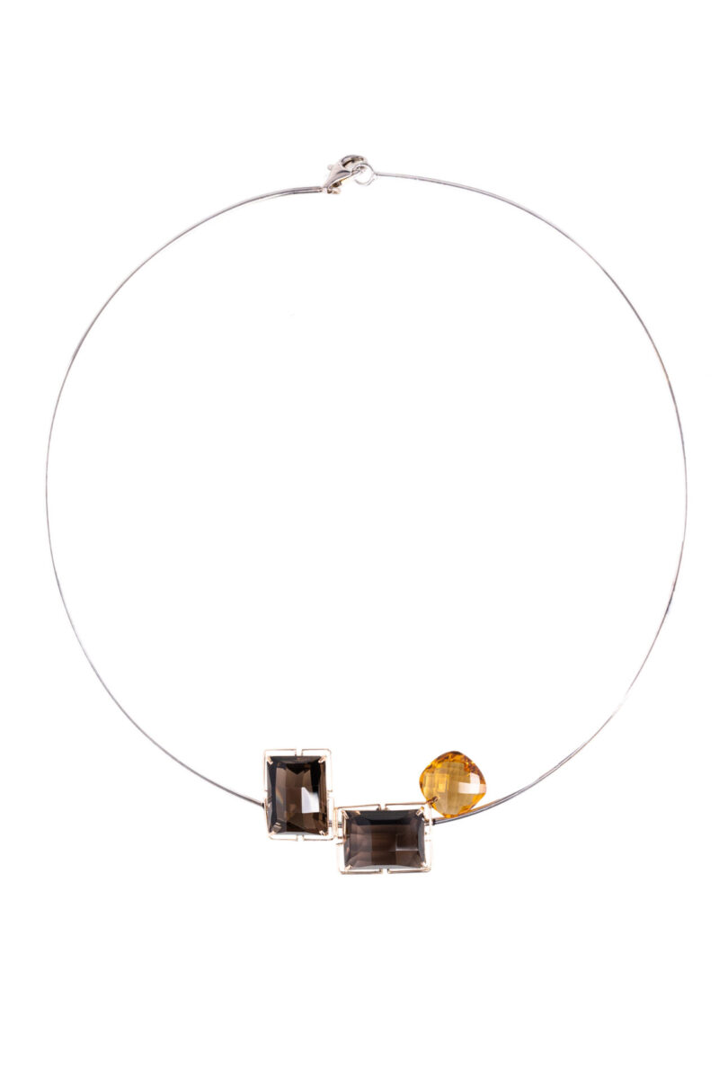 Halsreifen mit 3 Farfallina Steinen 2x Rauchquarz und 1x Citrin (in allen Farfallina Farben erhältlich)