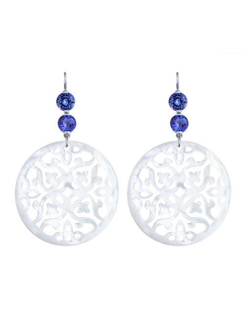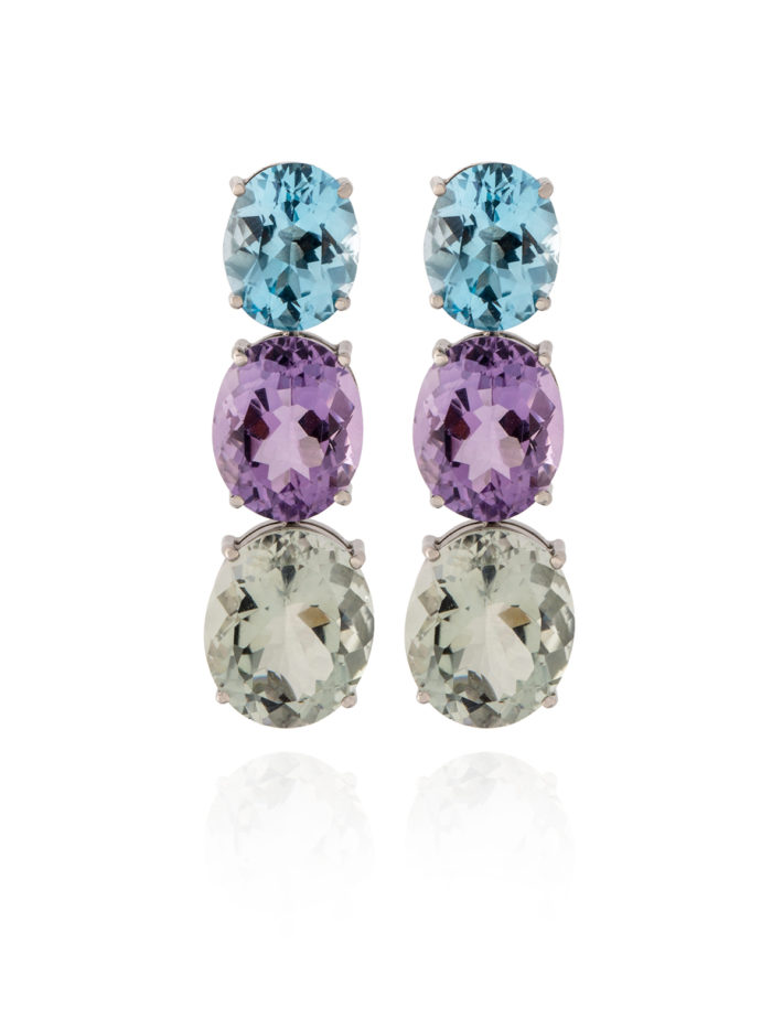 Blautopas, Amethyst, Prasiolith gefasst in 18 K Weissgold