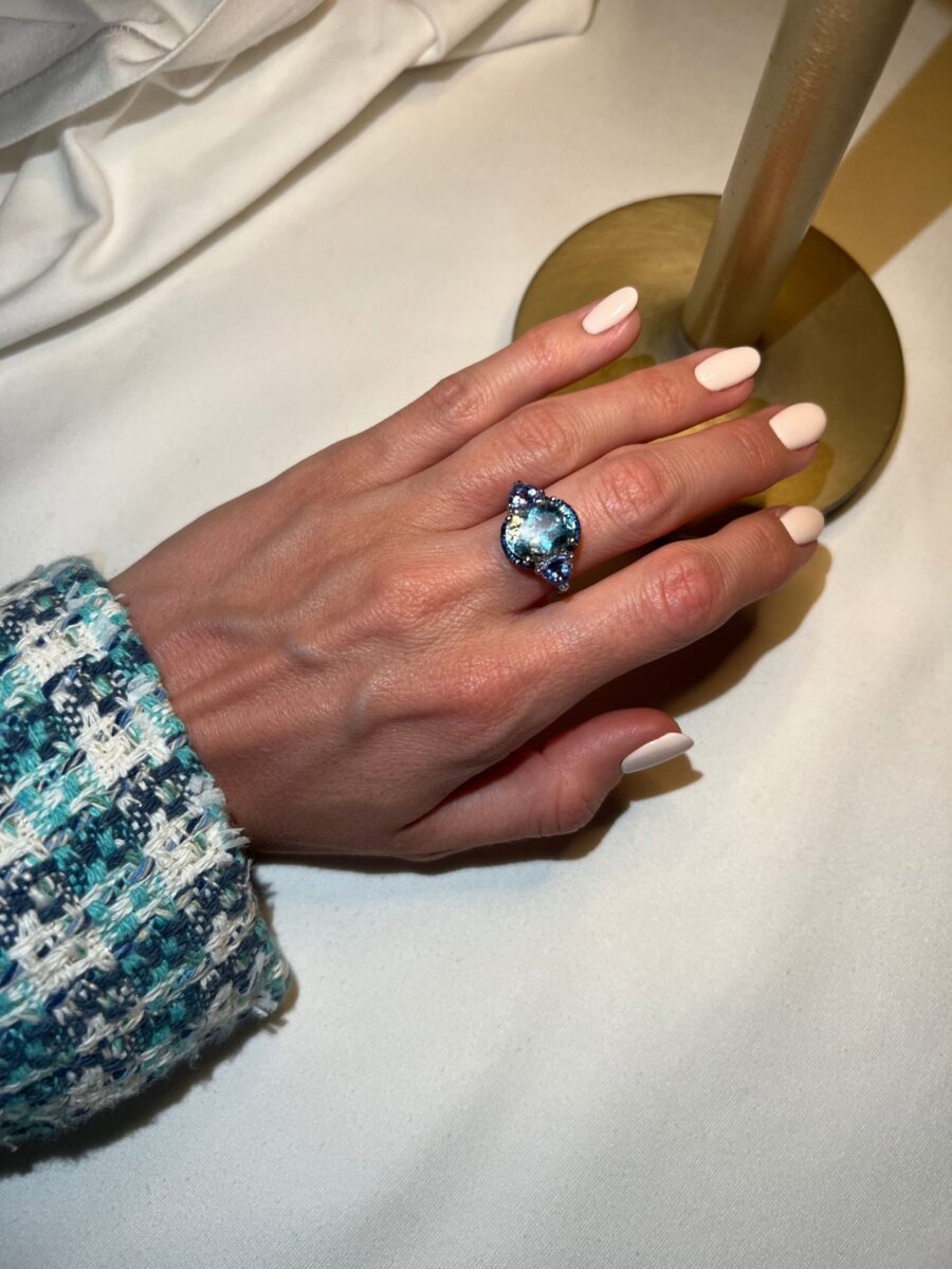 Blauer Topas 6,60 ct mit 2 Tansaniten , 1,63 ct