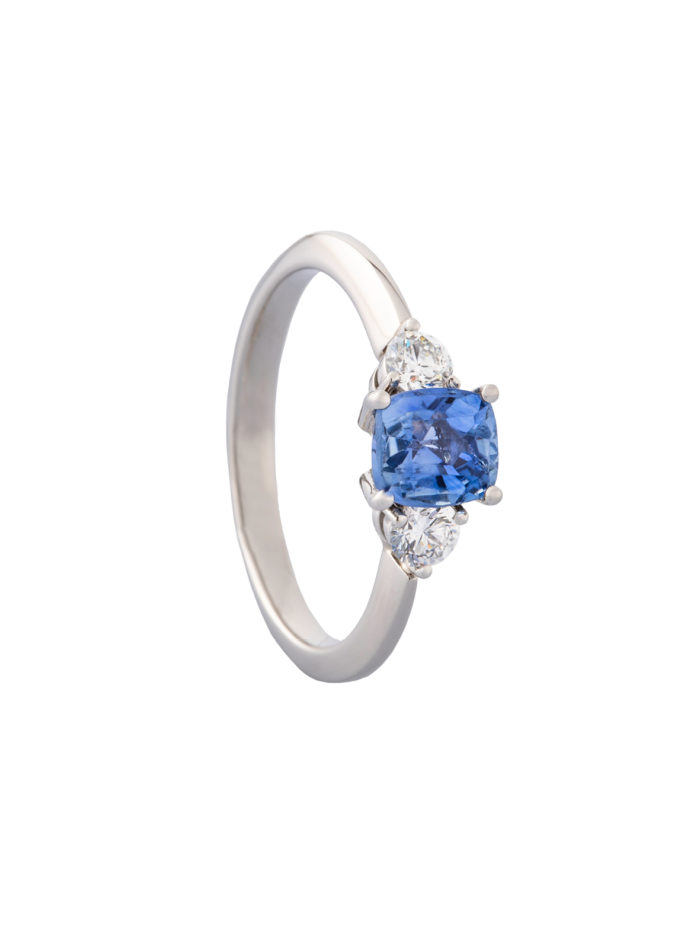 Platin Saphir-Ring im Carre-Schliff, seitlich mit Brillanten besetzt 2x 0,15 ct