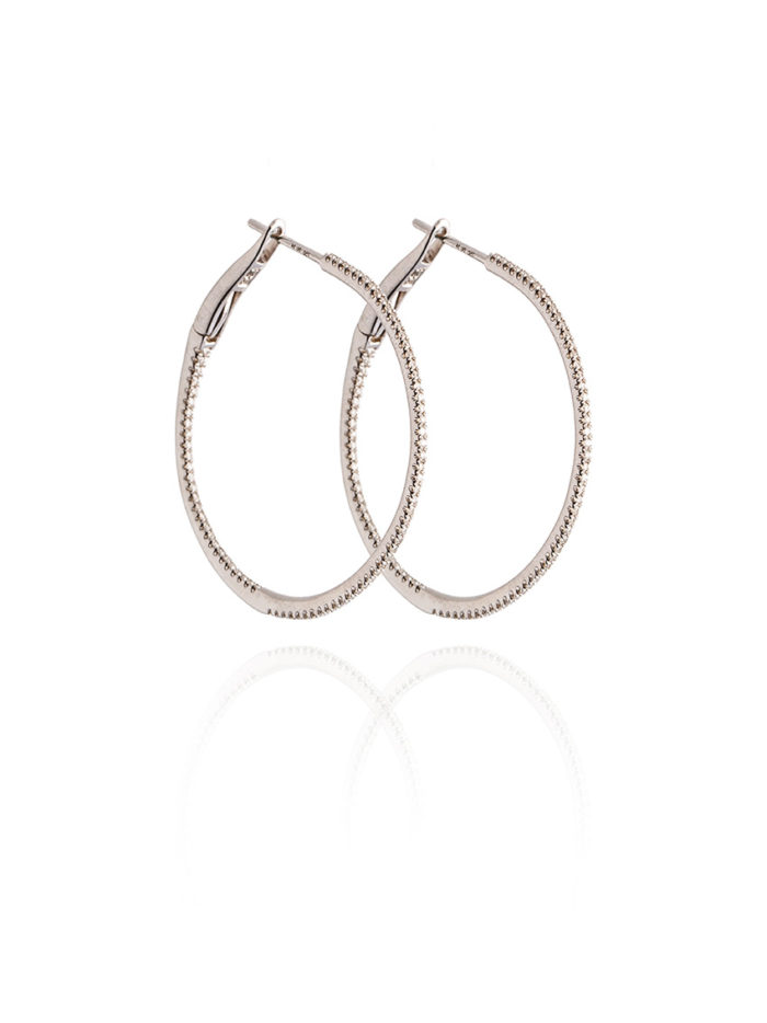 18 kt Weißgold Creolen , innen und aussen mit Diamanten, 30 mm Durchmesser